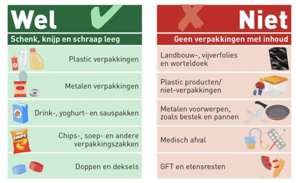 Belangrijk blijft dat je verpakkingen zo leeg mogelijk aanbiedt. Dit verbetert de kwaliteit van het recyclingproces.
