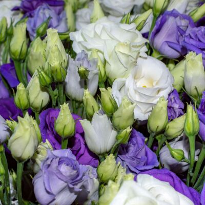 - Eustoma (Lisianthus): sierlijk én robuust, perfect voor een visiteboeket.