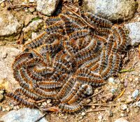 Dennenprocessierups op pad in processie