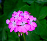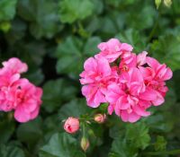 - Geurganium (Pelargonium graveolens): Minder uitbundig in bloei, maar met heerlijk geurende bladeren, van citroen tot muntachtig.