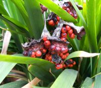 Engelenverdriet, Iris foetidissima, is lieflijk groen met mooie bloemen. Alleen haar geur doet je denken aan natte sokken na een regenbui. Engelenverdriet is daarom een gewaagde keuze voor wie gasten vaak uitnodigt en zelf een sterk geurvermogen heeft.