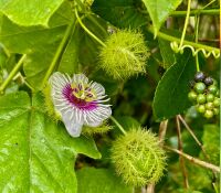 - Stinkende passiebloem (Passiflora foetida): Deze klimplant heeft een bijzondere bloem en pluizige omhulsels rond de vruchten. Het blad kan een sterke, wat muffe geur afgeven wanneer je het aanraakt.