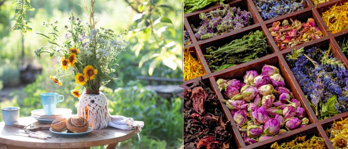 - Zelfgeplukte kruiden en bloemen voor verse thee