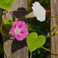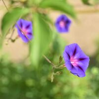 - Ipomoea purpurea – dit is de klassieke Morning Glory, met paarse of blauwe bloemen, eenjarig, makkelijk te zaaien, alleen niet winterhard.