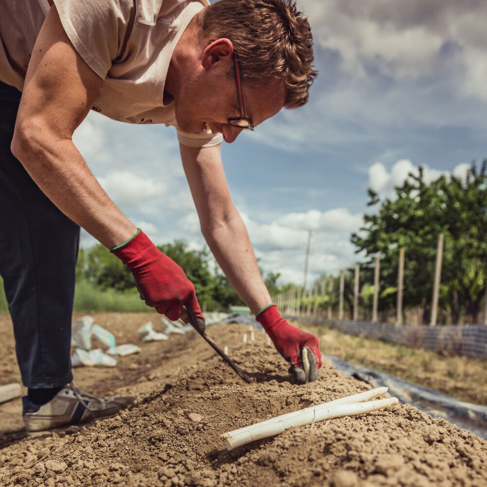 Vanaf het 3e jaar breekt het feest aan, ergens tussen april en juni. Steek de asperges voorzichtig uit, net voordat ze het daglicht zien. Verser dan dit krijg je het niet.