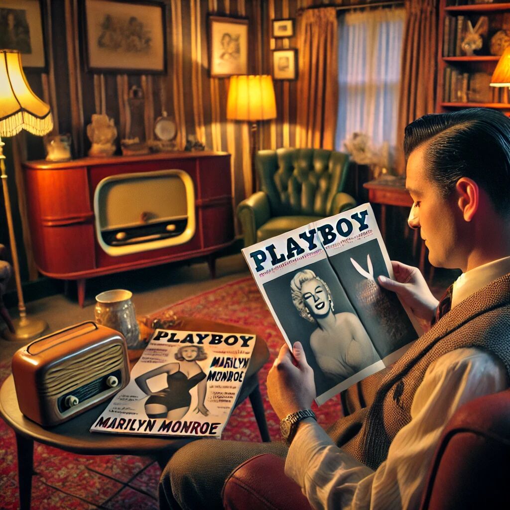 In december 1953 verscheen de eerste editie van Playboy, opgericht door Hugh Hefner. Op de cover prijkte Marilyn Monroe, wat meteen de aandacht trok en het blad tot een onmiddellijk succes maakte. Playboy introduceerde een nieuwe benadering van mannenbladen, waarin niet alleen foto’s van schaarsgeklede vrouwen, maar ook interviews, artikelen over cultuur, politiek en literatuur een prominente plaats kregen. Dit maakte het blad tot een invloedrijk cultureel fenomeen dat grensverleggend was voor zijn tijd. De eerste oplage van ongeveer 54.000 exemplaren was binnen enkele weken uitverkocht en markeerde het begin van een iconisch tijdschrift.