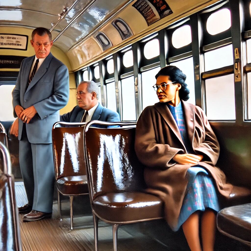 Op 1 december 1955 weigerde Rosa Parks, een Afro-Amerikaanse vrouw, om haar zitplaats in een bus in Montgomery, Alabama, af te staan aan een witte passagier. Dit moedige gebaar tegen de segregatiewetten markeerde een keerpunt in de Amerikaanse burgerrechtenbeweging. Haar arrestatie leidde tot de Montgomery busboycot, geleid door Martin Luther King Jr., waarbij de Afro-Amerikaanse gemeenschap meer dan een jaar lang de stadsbussen boycotte. Rosa Parks’ actie en de daaropvolgende boycot zorgden voor internationale aandacht en brachten de strijd tegen rassenscheiding en onrechtvaardigheid in een stroomversnelling. Haar daad werd een symbool van verzet en moed in de strijd voor gelijke rechten.