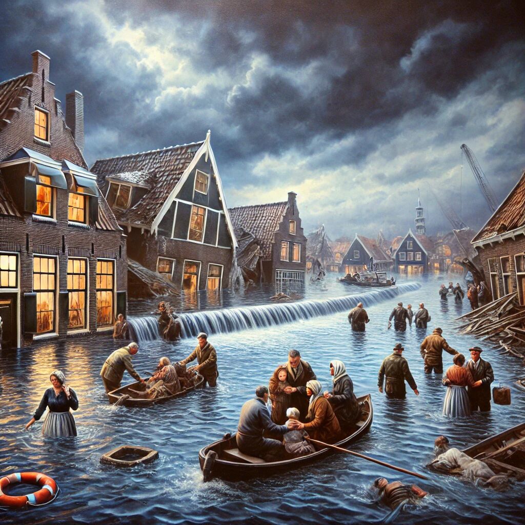 In de nacht van 31 januari op 1 februari 1953 werd Nederland getroffen door een van de grootste natuurrampen in zijn geschiedenis: de watersnoodramp. Door een combinatie van een zware storm en springvloed braken de dijken in Zeeland, Zuid-Holland en Noord-Brabant. Het water verwoestte dorpen en landbouwgrond, waarbij 1836 mensen omkwamen en tienduizenden dakloos raakten. De ramp bracht een golf van nationale en internationale hulp op gang. Als reactie besloot Nederland het ambitieuze Deltaplan te ontwikkelen om het land beter te beschermen tegen de zee. De watersnoodramp is een blijvende herinnering aan de kracht van de natuur en de veerkracht van de mens.