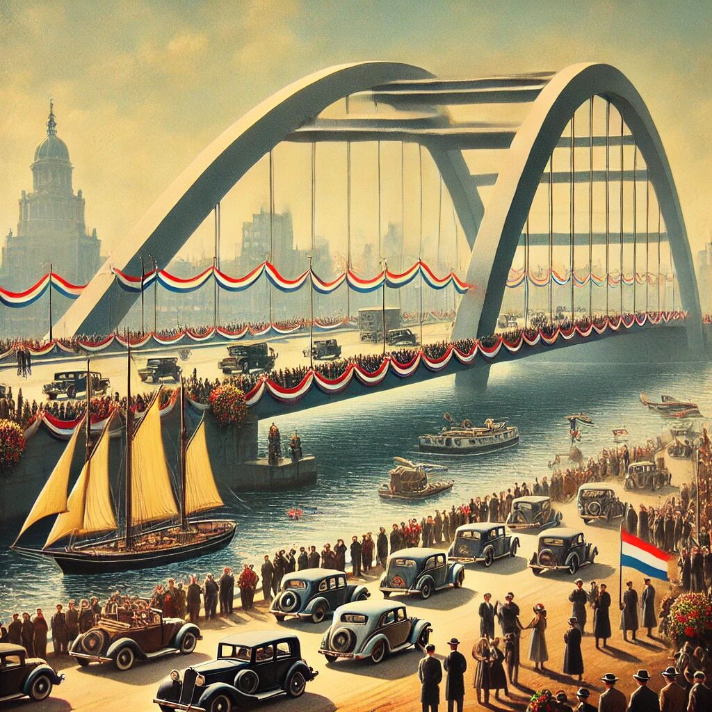 Op 1 februari 1965 werd de Van Brienenoordbrug officieel geopend, een iconisch bouwwerk dat de oevers van de Nieuwe Maas bij Rotterdam met elkaar verbindt. De brug, vernoemd naar het nabijgelegen eiland Van Brienenoord, is een belangrijk onderdeel van de A16 en een cruciale verkeersader voor Nederland. Met zijn indrukwekkende boogconstructie en een lengte van meer dan een kilometer was het destijds een technisch hoogstandje. De brug werd al snel een symbool van de moderne infrastructuur in Nederland. Door de groeiende verkeersdrukte werd in 1990 een tweede brug toegevoegd om de capaciteit te vergroten. De Van Brienenoordbrug blijft een herkenbaar monument in het Nederlandse landschap.