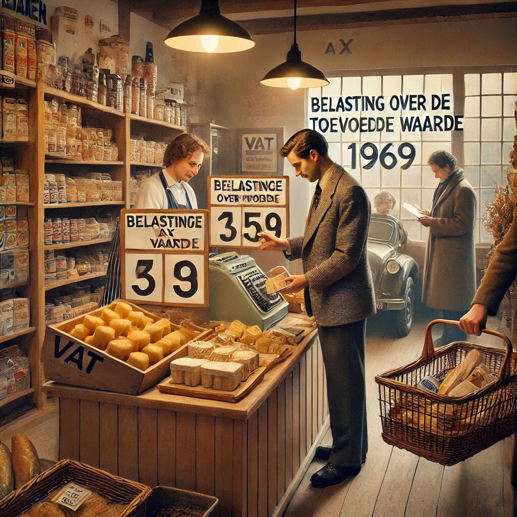 In 1969 werd in Nederland de Belasting over de Toegevoegde Waarde (btw) geïntroduceerd, waarmee het eerdere omzetbelastingstelsel werd vervangen. Dit nieuwe systeem was gebaseerd op Europese richtlijnen en had als doel een uniform belastingmodel binnen de Europese Economische Gemeenschap (EEG) te creëren. De btw werd aanvankelijk geheven tegen 2 tarieven: een laag tarief van 4% voor basisgoederen zoals voedsel en een standaardtarief van 12% voor de meeste andere producten en diensten. Deze belasting was bedoeld om transparanter en efficiënter te zijn dan de omzetbelasting. De invoering van de btw markeerde een belangrijke modernisering van het Nederlandse belastingstelsel. Sindsdien zijn de tarieven en regels meerdere keren aangepast.