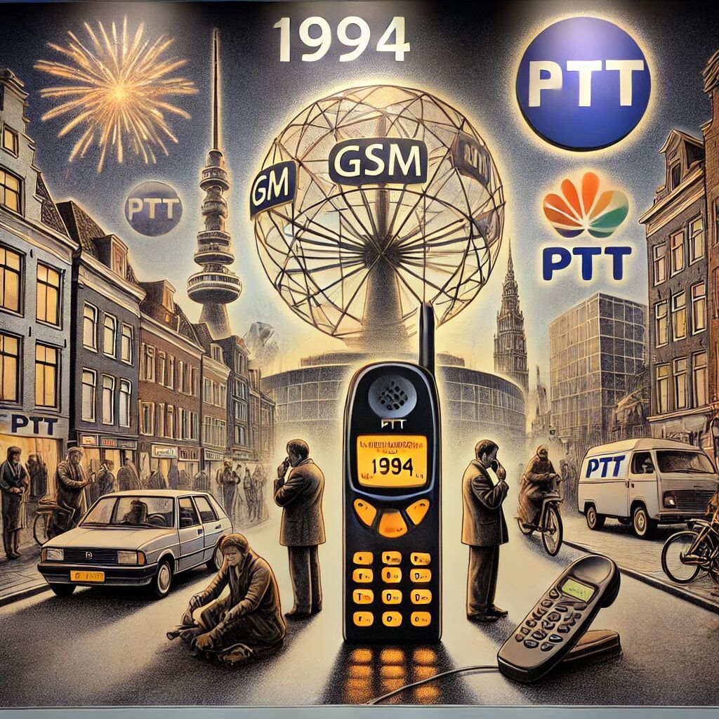 In 1994 opende de PTT Telecom (nu KPN) het eerste GSM-netwerk in Nederland, waarmee mobiel bellen een nieuwe standaard kreeg. Dit netwerk betekende een enorme verbetering ten opzichte van de oudere analoge systemen, met betere geluidskwaliteit, veiliger verbindingen en internationale compatibiliteit. Aanvankelijk waren mobiele telefoons nog groot en duur, maar het GSM-netwerk legde de basis voor de snelle groei van mobiel bellen en sms-verkeer in Nederland. In de jaren daarna werd de dekking uitgebreid en kwamen steeds meer mensen in aanraking met mobiele communicatie. Dit markeerde het begin van de mobiele revolutie, die uiteindelijk zou leiden tot de huidige smartphonecultuur.