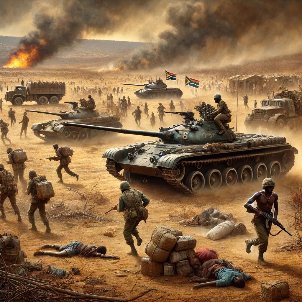In 1981 vielen Zuid-Afrikaanse troepen het zuiden van Angola binnen, een escalatie van de grensconflicten die voortkwamen uit de Zuid-Afrikaanse Apartheidsregering en de Angolese burgeroorlog. Deze militaire operatie, bekend als Operatie Protea, was gericht tegen bases van de SWAPO, een Namibische verzetsbeweging die in Angola opereerde. De inval leidde tot hevige gevechten, waarbij Zuid-Afrikaanse troepen gebruik maakten van tanks en luchtmacht tegen Angolese en Cubaanse verdedigers. Het conflict veroorzaakte een grote humanitaire crisis, met duizenden burgers die op de vlucht sloegen. De inval versterkte internationale kritiek op het apartheidsregime en de Zuid-Afrikaanse betrokkenheid in Angola.
