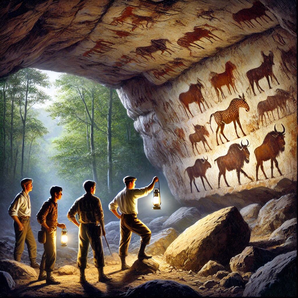 In 1940 ontdekten 4 tieners per toeval de prehistorische grotschilderingen van Lascaux in Frankrijk. De schilderingen, meer dan 17.000 jaar oud, tonen gedetailleerde afbeeldingen van dieren zoals paarden, bizons en herten. Ze worden beschouwd als een van de mooiste voorbeelden van prehistorische kunst. Om de originele schilderingen te beschermen, is een replica gemaakt voor bezoekers.