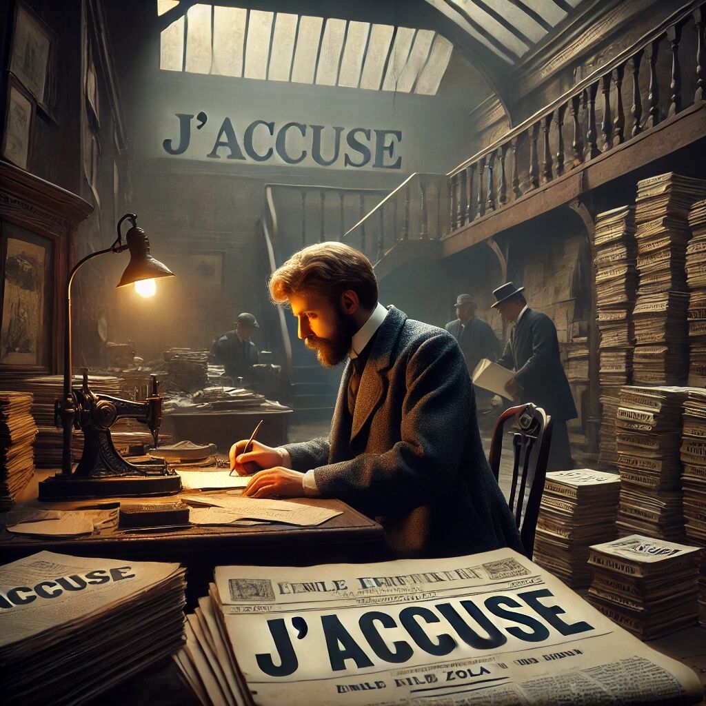 In 1898 publiceerde de Franse schrijver Émile Zola zijn beroemde open brief J’accuse…! in de krant L’Aurore. De brief was gericht aan de Franse president en bracht het onrecht in de Dreyfus-affaire aan het licht, waarin de Joodse legerkapitein Alfred Dreyfus ten onrechte was veroordeeld voor spionage. Zola beschuldigde hoge militairen en politici van antisemitisme en samenzwering. Zijn woorden veroorzaakten een enorme controverse en verdeelden Frankrijk, maar ze hielpen ook de publieke opinie te mobiliseren voor gerechtigheid. Hoewel Zola zelf vervolgd werd en moest vluchten naar Engeland, wordt J’accuse beschouwd als een krachtig voorbeeld van journalistiek en sociale rechtvaardigheid.