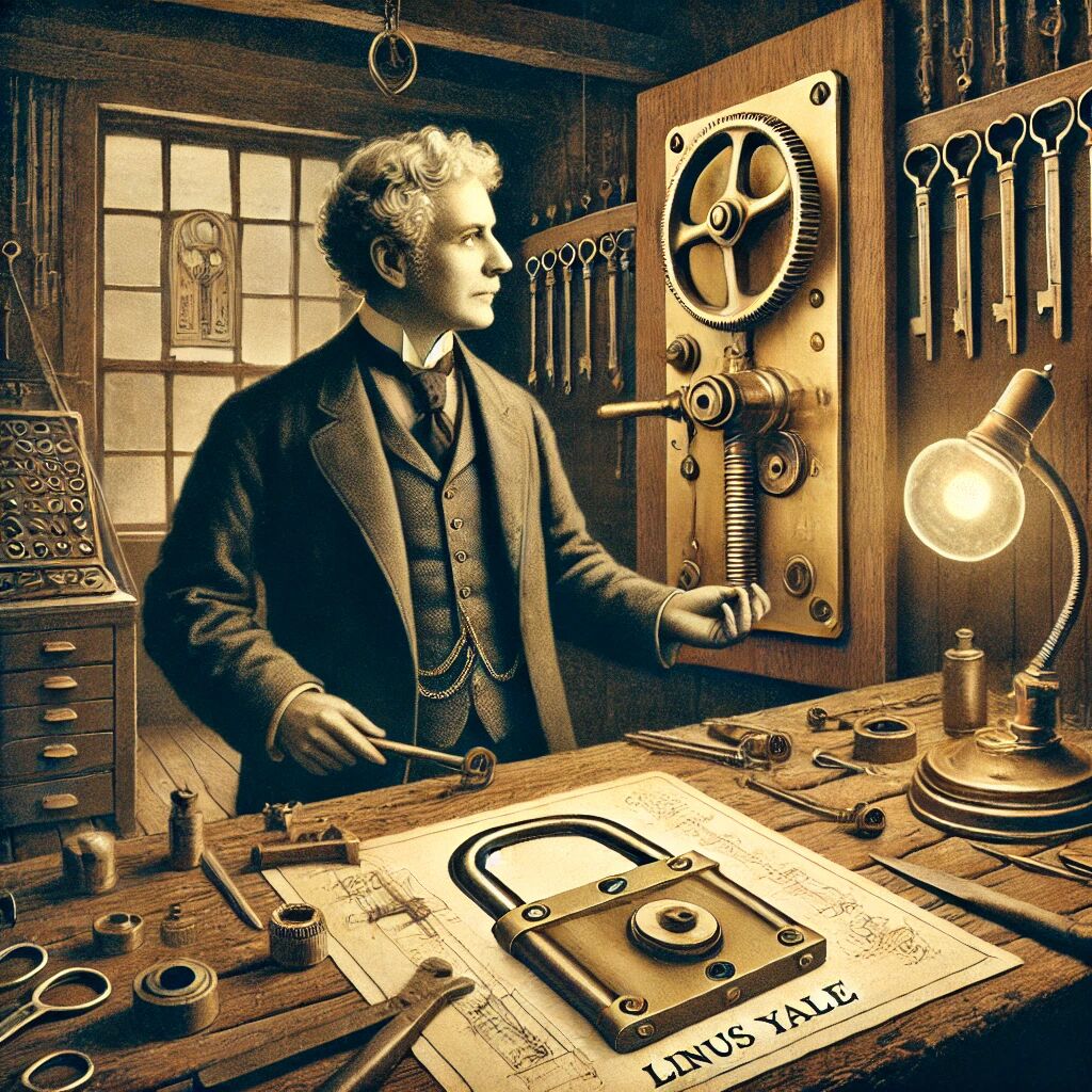 In 1844 kreeg Linus Yale een octrooi op een vernieuwend deurslot, waarmee hij de basis legde voor moderne cilindersloten. Zijn ontwerp maakte gebruik van kleine pinnen binnenin het slot, die alleen met de juiste sleutel op de juiste hoogte konden worden gebracht om het mechanisme te openen. Dit principe zorgde voor een veel veiligere en betrouwbaardere manier om deuren te beveiligen dan eerdere slotontwerpen. Later zou zijn zoon, Linus Yale Jr., het ontwerp verder verbeteren en de bekende Yale-slotindustrie oprichten. Deze innovatie blijft tot op de dag van vandaag de standaard voor veel sloten wereldwijd.
