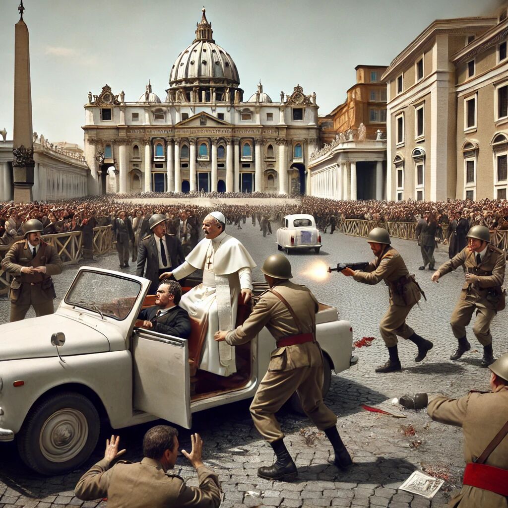 Op 13 mei 1981 werd paus Johannes Paulus II slachtoffer van een moordaanslag op het Sint-Pietersplein in Vaticaanstad. De Turkse extremist Mehmet Ali Ağca schoot de paus meerdere keren van dichtbij neer terwijl hij door de menigte reed. Johannes Paulus II raakte zwaargewond maar overleefde de aanslag na een langdurige operatie en herstelperiode. Later bezocht hij Ağca in de gevangenis om hem te vergeven voor zijn daad. De aanslag had wereldwijd grote impact en leidde tot strengere beveiligingsmaatregelen voor de paus.