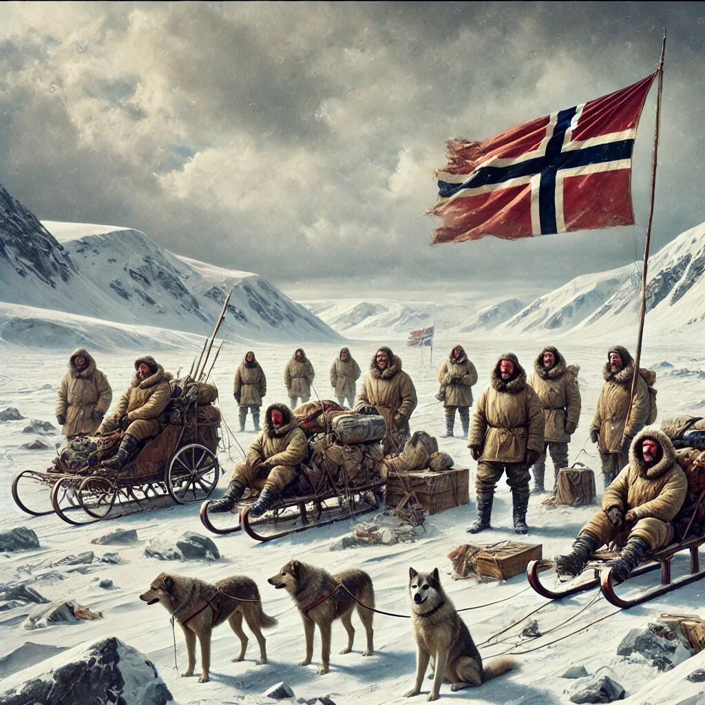 Op 14 december 1911 bereikte de Noorse ontdekkingsreiziger Roald Amundsen als eerste mens de geografische Zuidpool. Samen met zijn teamgenoten overwon hij extreme omstandigheden en legde ze honderden kilometers door de ijzige wildernis af. Amundsen had een zorgvuldige strategie ontwikkeld en zich goed voorbereid op het barre klimaat, met behulp van honden om de slede te trekken en zorgvuldig geplande routes. Deze expeditie markeerde een triomf in de geschiedenis van de poolreizen en zette Noorwegen op de kaart als pionier in de ontdekkingswereld.