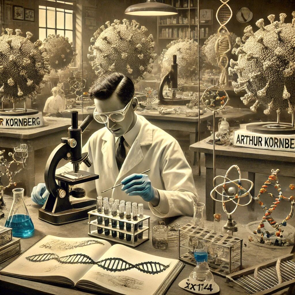 In 1967 slaagde de Amerikaanse biochemicus Arthur Kornberg erin om als eerste een kunstmatig virus, bekend als ΦX174, samen te stellen. Dit virus, dat normaal bacteriën infecteert, werd volledig in het laboratorium opgebouwd, wat een doorbraak betekende in de moleculaire biologie en genetica. Kornbergs prestatie toonde aan dat het mogelijk was om genetisch materiaal in zijn geheel na te bootsen, een vooruitgang die grote implicaties had voor de biotechnologie en medische wetenschap. Dit werk legde de basis voor toekomstige ontwikkelingen in genetische manipulatie en de synthese van leven op moleculair niveau.