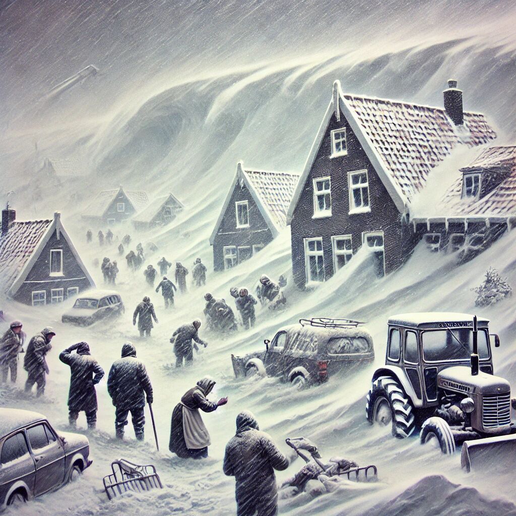 De zwaarste sneeuwstorm van de 20e eeuw in Nederland vond plaats op 14 februari 1979 en staat bekend als de “sneeuwjacht van 1979”. Deze storm werd gekenmerkt door hevige sneeuwval, gecombineerd met krachtige oostenwinden die tot extreme sneeuwduinen van soms wel 6 meter hoog leidden. Het openbare leven kwam volledig tot stilstand: wegen en spoorwegen waren onbegaanbaar, scholen sloten hun deuren en complete dorpen raakten geïsoleerd. In het noorden van het land, met name Friesland en Groningen, duurde het dagen voordat de situatie weer enigszins onder controle was. De sneeuwstorm liet niet alleen een blijvende indruk achter, maar toonde ook de kwetsbaarheid van Nederland in extreme weersomstandigheden.