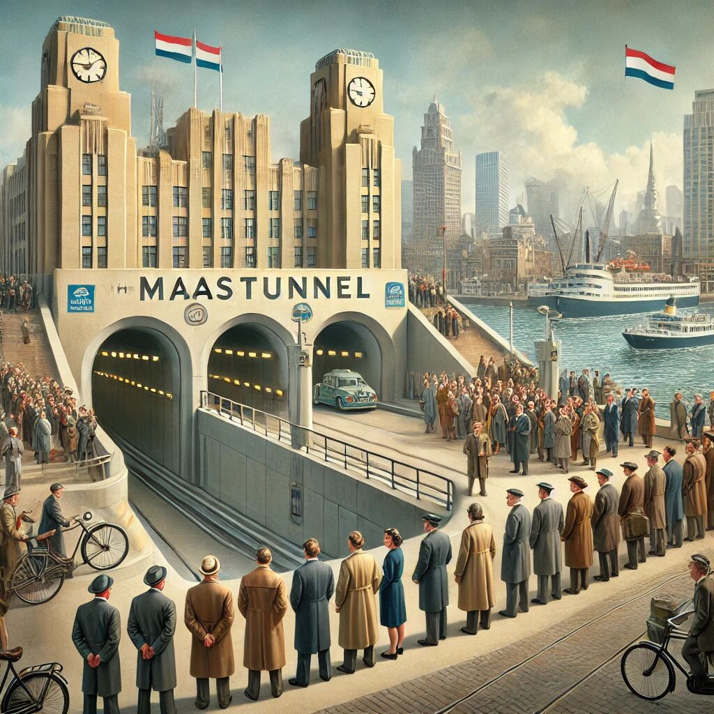 Op 14 februari 1942 werd de Maastunnel in Rotterdam officieel geopend, een baanbrekend project in de Nederlandse infrastructuur. Het was de eerste verkeerstunnel van Nederland en verbond de noord- en zuidoever van de Maas, wat een enorme impuls gaf aan de bereikbaarheid van de stad. De tunnel, die zowel auto-, fiets- als voetgangerstunnels omvatte, werd gebouwd in een periode van economische uitdagingen en oorlogsomstandigheden. Met zijn innovatieve ontwerp en betonnen prefab-segmenten was de Maastunnel een technisch hoogstandje. Tot op de dag van vandaag is deze tunnel een belangrijke verkeersader en een historisch icoon van Rotterdam.