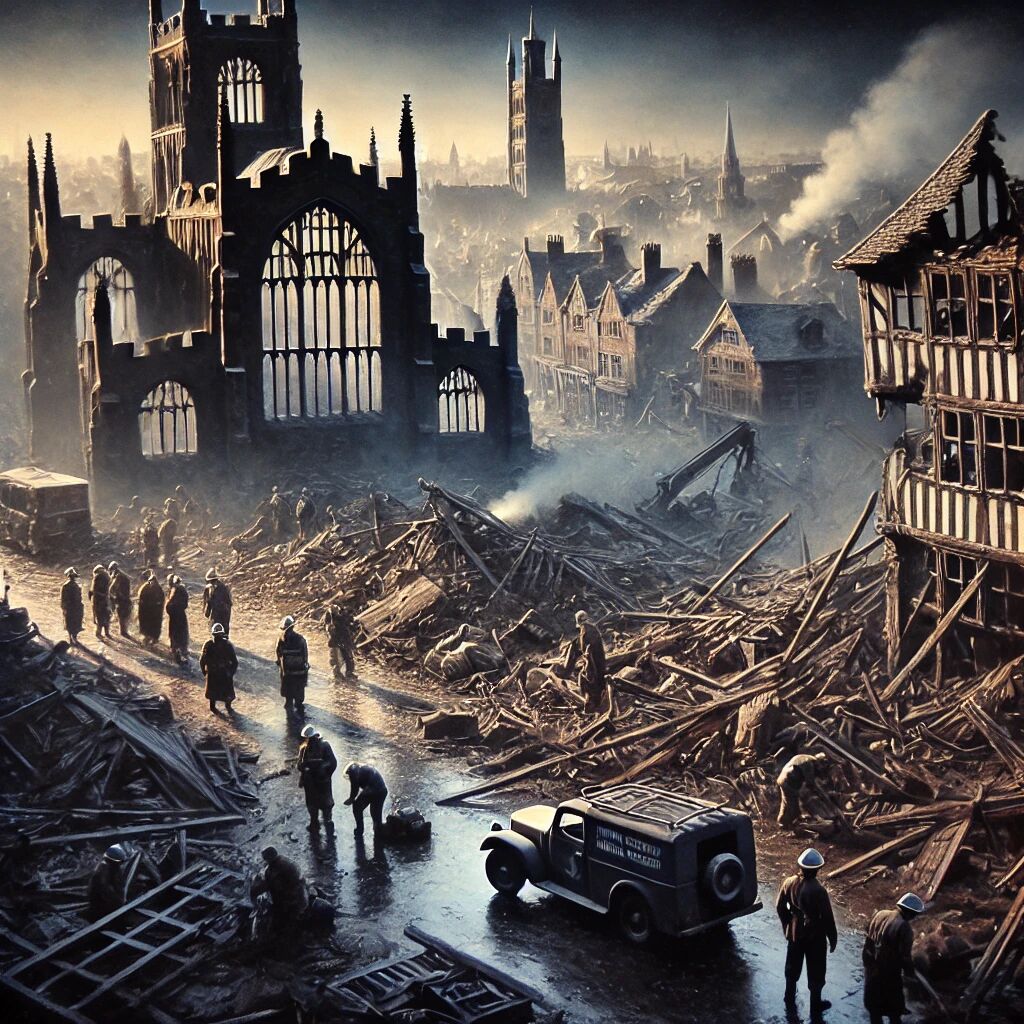 In 1940 werd de Engelse stad Coventry zwaar gebombardeerd door de Duitse luchtmacht tijdens de Blitz. Op de avond van 14 november 1940 vielen honderden Duitse bommenwerpers de stad aan, in wat een van de meest verwoestende luchtaanvallen van de Tweede Wereldoorlog zou worden. De bombardementen verwoestten een groot deel van de stad, inclusief de historische kathedraal van Coventry. Meer dan 500 mensen kwamen om, en duizenden gebouwen werden vernietigd of beschadigd. Het bombardement op Coventry was een symbolisch moment dat de veerkracht van de Britse bevolking tijdens de oorlog benadrukte.