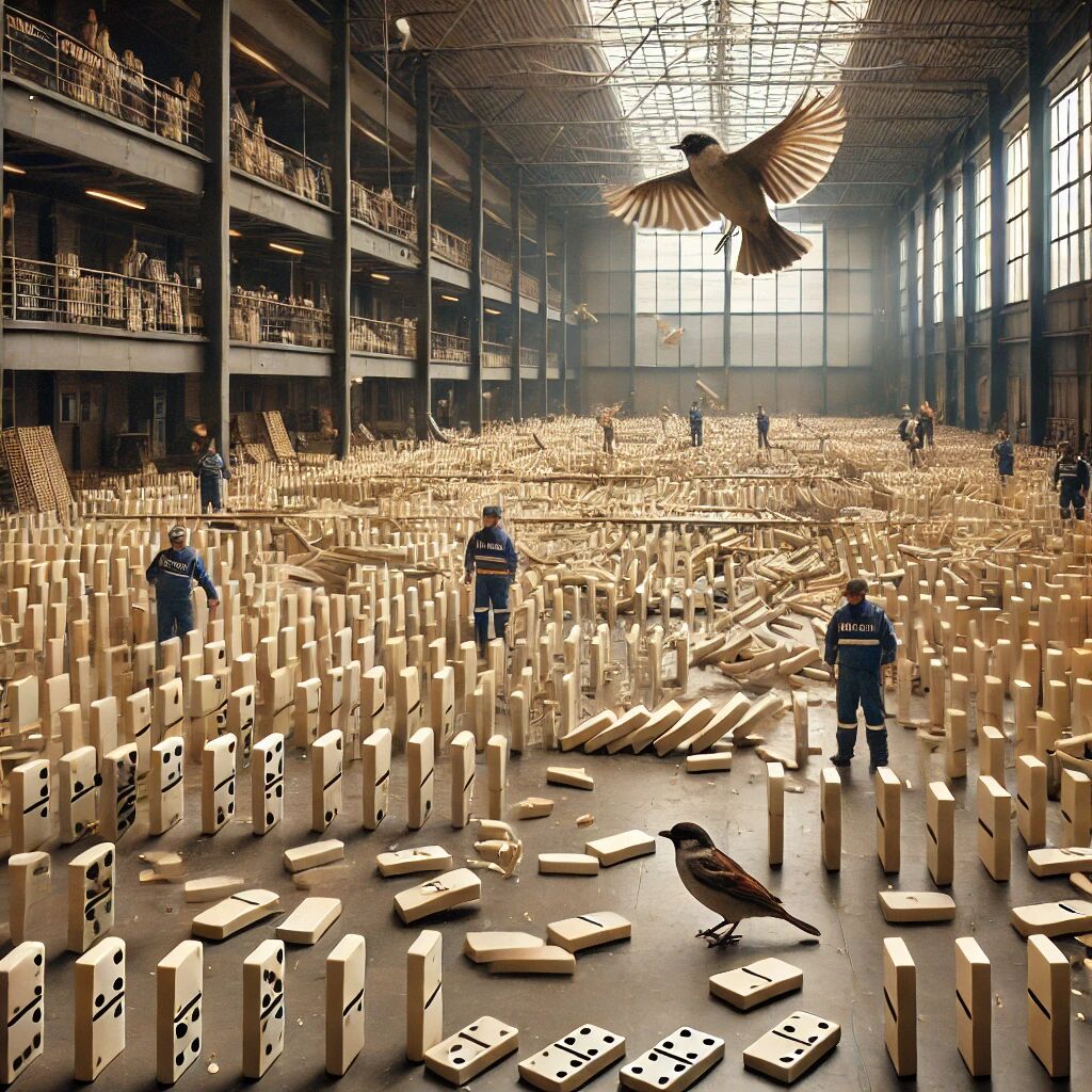 2005 – Een mus verstoort de voorbereidingen van Domino Day