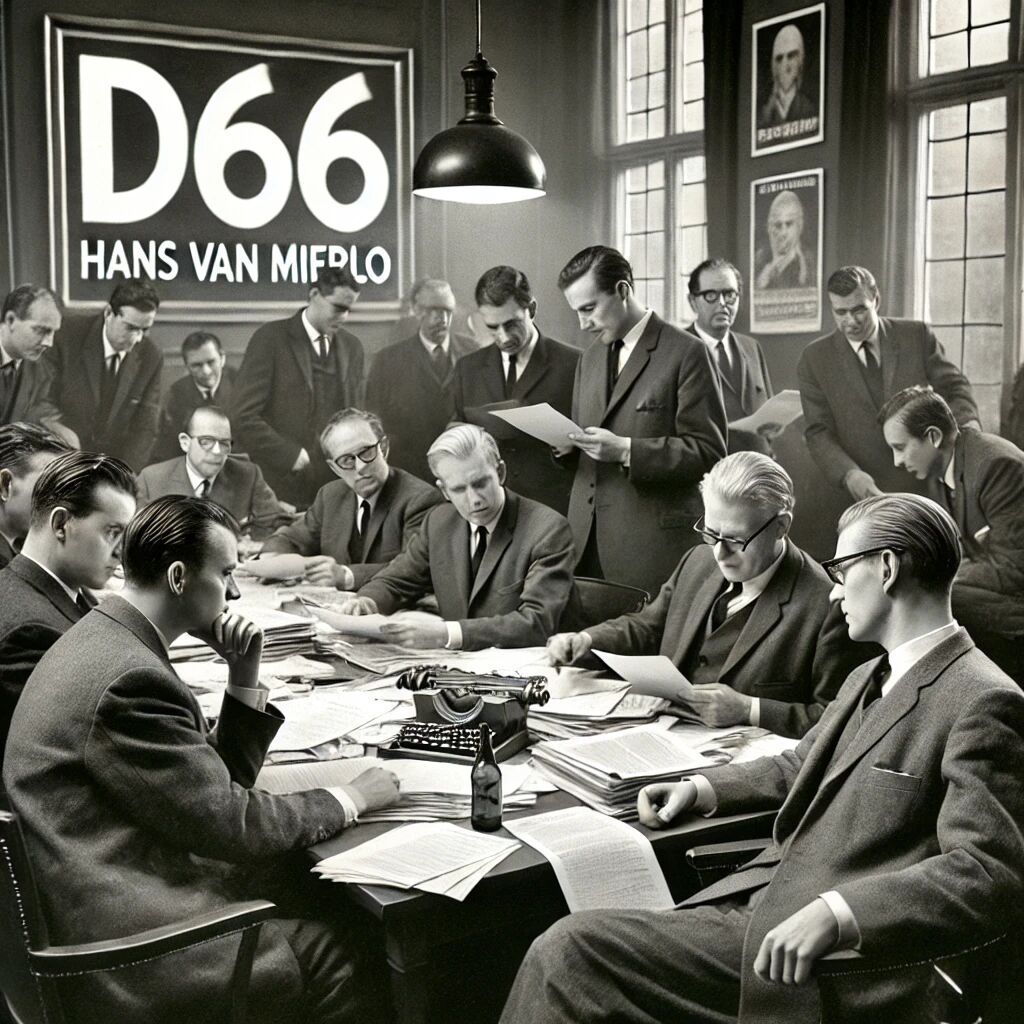 In 1966 werd de Nederlandse politieke partij D66 opgericht door een groep progressieve intellectuelen onder leiding van Hans van Mierlo. De partij ontstond uit onvrede over het bestaande politieke bestel en wilde de democratie vernieuwen door middel van hervormingen, zoals de invoering van een districtenstelsel en gekozen premiers. D66 profileerde zich als een progressief-liberale partij die zich sterk maakte voor individuele vrijheden, onderwijs en milieubescherming. Ondanks aanvankelijke scepsis wist de partij zich snel te vestigen in de Nederlandse politiek. D66 zou later uitgroeien tot een invloedrijke factor in diverse coalitieregeringen.