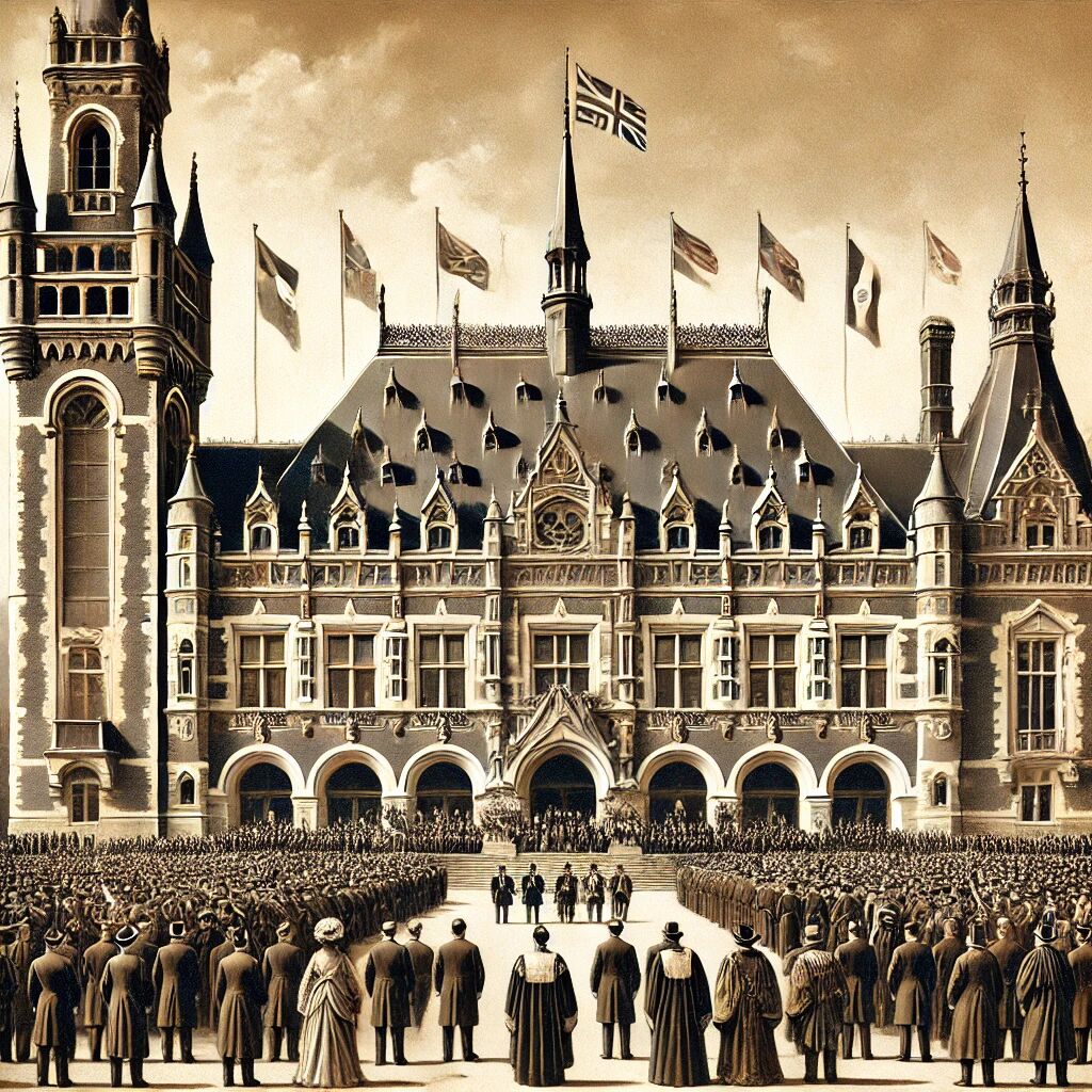 In 1922 is het Internationaal Gerechtshof officieel geopend in het Vredespaleis in Den Haag. Dit gerechtshof, dat fungeert als het belangrijkste gerechtelijke orgaan van de Volkenbond (de voorloper van de Verenigde Naties), werd opgericht om internationale geschillen vreedzaam op te lossen. Het Vredespaleis, een indrukwekkend neorenaissancegebouw, bood een passende en symbolische locatie voor de bevordering van wereldvrede en rechtspraak. Met de oprichting van dit hof is een belangrijke stap gezet richting een internationaal rechtssysteem. Na de Tweede Wereldoorlog is het hof in 1945 vervangen door het huidige Internationaal Gerechtshof van de Verenigde Naties, dat nog steeds in het Vredespaleis gevestigd is.