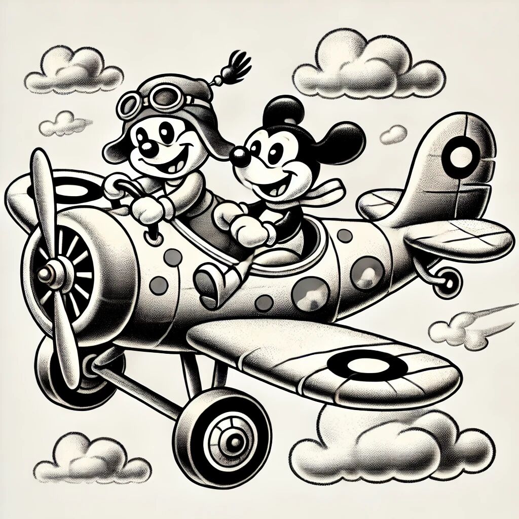 In 1928 maakte Mickey Mouse zijn debuut in de korte tekenfilm Plane Crazy, een productie van Walt Disney en Ub Iwerks. Hoewel deze stomme film oorspronkelijk geen succes was bij testpublieken, kreeg Mickey later dat jaar zijn grote doorbraak met Steamboat Willie, dankzij het gebruik van synchroon geluid. Plane Crazy werd vervolgens opnieuw uitgebracht en kreeg alsnog erkenning. De avontuurlijke en ondeugende Mickey liet in deze film al zijn charme en humor zien, waarmee hij de basis legde voor zijn toekomstige iconische status. Deze eerste stappen markeerden het begin van een wereldwijd fenomeen dat nog steeds geliefd is.