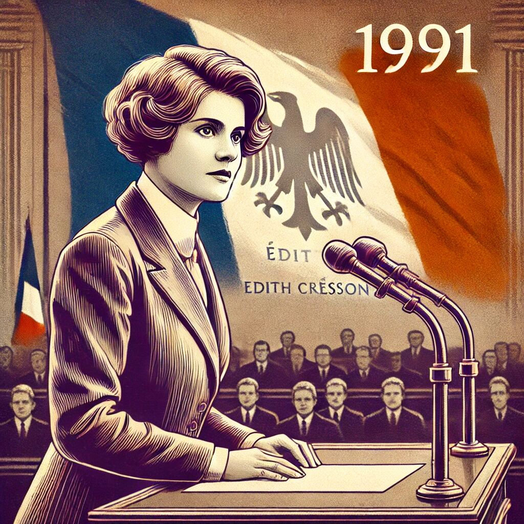 In 1991 schreef Edith Cresson geschiedenis door de eerste vrouwelijke premier van Frankrijk te worden. Ze werd op 15 mei benoemd door president François Mitterrand en leidde de regering tijdens een periode van economische en politieke uitdagingen. Cresson stond bekend om haar vastberadenheid en directe aanpak, maar haar premierschap duurde slechts tien maanden. Ze kreeg te maken met zware kritiek van politieke tegenstanders en de media, wat haar leiderschap bemoeilijkte. Desondanks blijft haar benoeming een belangrijke mijlpaal in de Franse politiek en een inspiratie voor vrouwen in leiderschapsrollen.