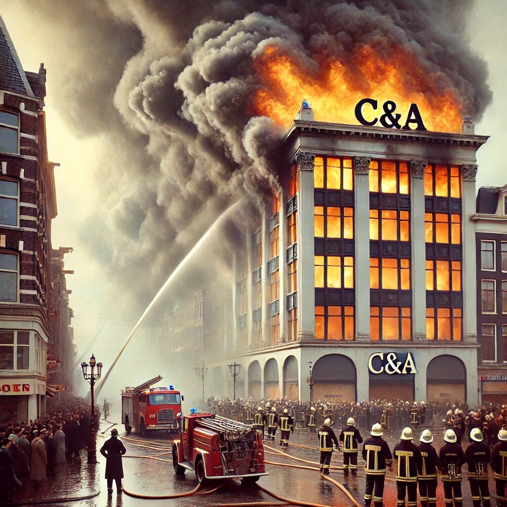 Op 16 februari 1963 brak er een verwoestende brand uit in het C&A-filiaal op het Damrak in Amsterdam. De brand ontstond door kortsluiting in een etalage en verspreidde zich razendsnel door het gebouw, mede door de grote hoeveelheden textiel en houten elementen. Binnen korte tijd stond het volledige pand in lichterlaaie, en het dak stortte uiteindelijk in. Ondanks de enorme rookontwikkeling en paniek konden alle 600 aanwezigen gelukkig op tijd worden geëvacueerd. Het gebouw werd grotendeels verwoest, wat leidde tot grote materiële schade. Deze ramp resulteerde in strengere brandveiligheidsvoorschriften voor warenhuizen en publieke gebouwen. C&A herbouwde later een modern en brandveiliger filiaal op dezelfde locatie.