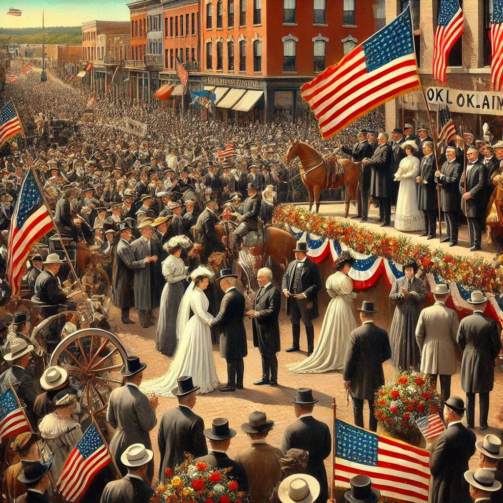 In 1907 werd Oklahoma officieel de 46e staat van de Verenigde Staten. Op 16 november 1907 ondertekende president Theodore Roosevelt de wet die de opname van Oklahoma in de Unie bevestigde. Voordat het een staat werd, stond het gebied bekend als Indian Territory en werd het bevolkt door inheemse Amerikaanse stammen die erheen waren gedwongen te verhuizen tijdens de Trail of Tears. De toetreding van Oklahoma was een belangrijke gebeurtenis in de groei van de Verenigde Staten en markeerde de integratie van diverse gemeenschappen in het nieuwe staatsbestel.