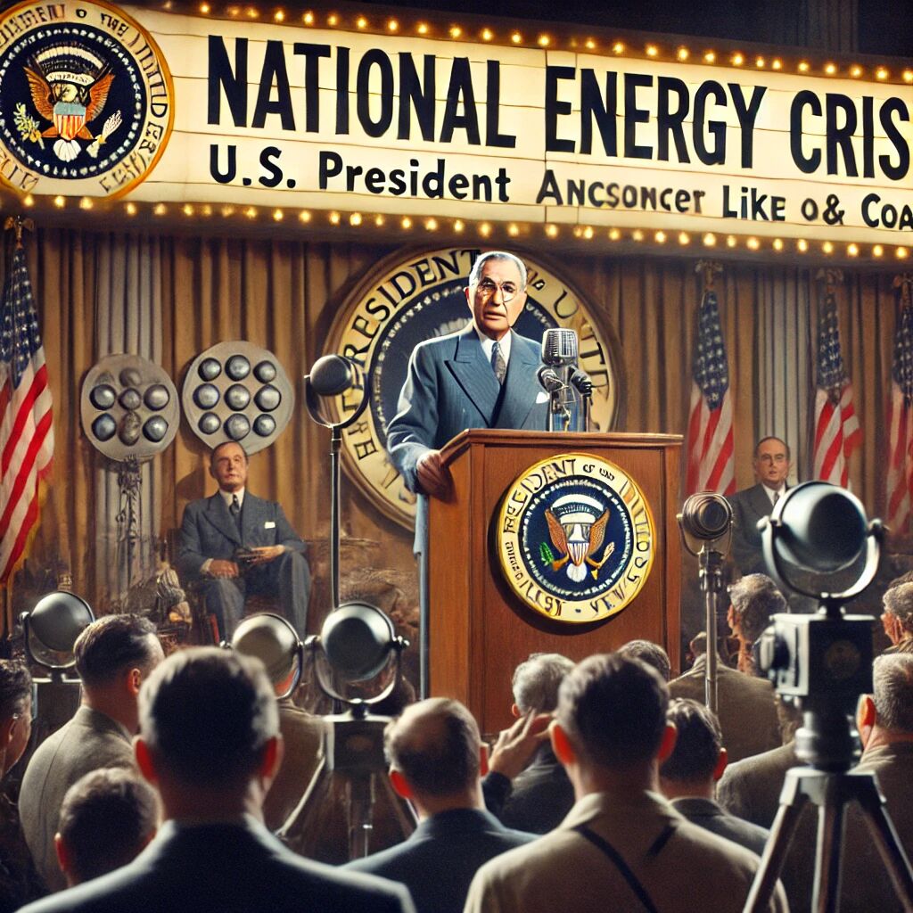 In 1950 kondigde president Harry S. Truman een nationale energiecrisis aan in de Verenigde Staten, grotendeels veroorzaakt door de Koreaanse Oorlog en de toenemende vraag naar olie en steenkool. Op 16 november 1950 nam Truman drastische maatregelen, waaronder de noodzaak om energie te rantsoeneren en de productie te verhogen, omdat de oorlogsinspanningen de Amerikaanse energievoorziening onder druk zetten. Deze crisis leidde tot een breed debat over het energiebeleid en de noodzaak om alternatieve energiebronnen te ontwikkelen, iets dat in de decennia daarna steeds belangrijker zou worden.