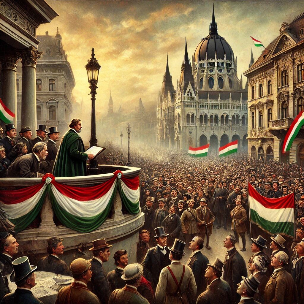 In 1918, na het einde van de Eerste Wereldoorlog en de ineenstorting van het Oostenrijks-Hongaarse Rijk, werd de Democratische Republiek Hongarije uitgeroepen. Op 16 november 1918 kondigde de Hongaarse leider Mihály Károlyi de oprichting van de republiek aan. Dit markeerde het begin van een korte, maar belangrijke periode in de Hongaarse geschiedenis, waarin het land probeerde zich te herstructureren als een moderne democratie na eeuwen van Habsburgse overheersing. Ondanks de hoop op politieke hervormingen zou de nieuwe republiek slechts kort bestaan, voordat Hongarije in 1919 een communistische raadrepubliek werd.