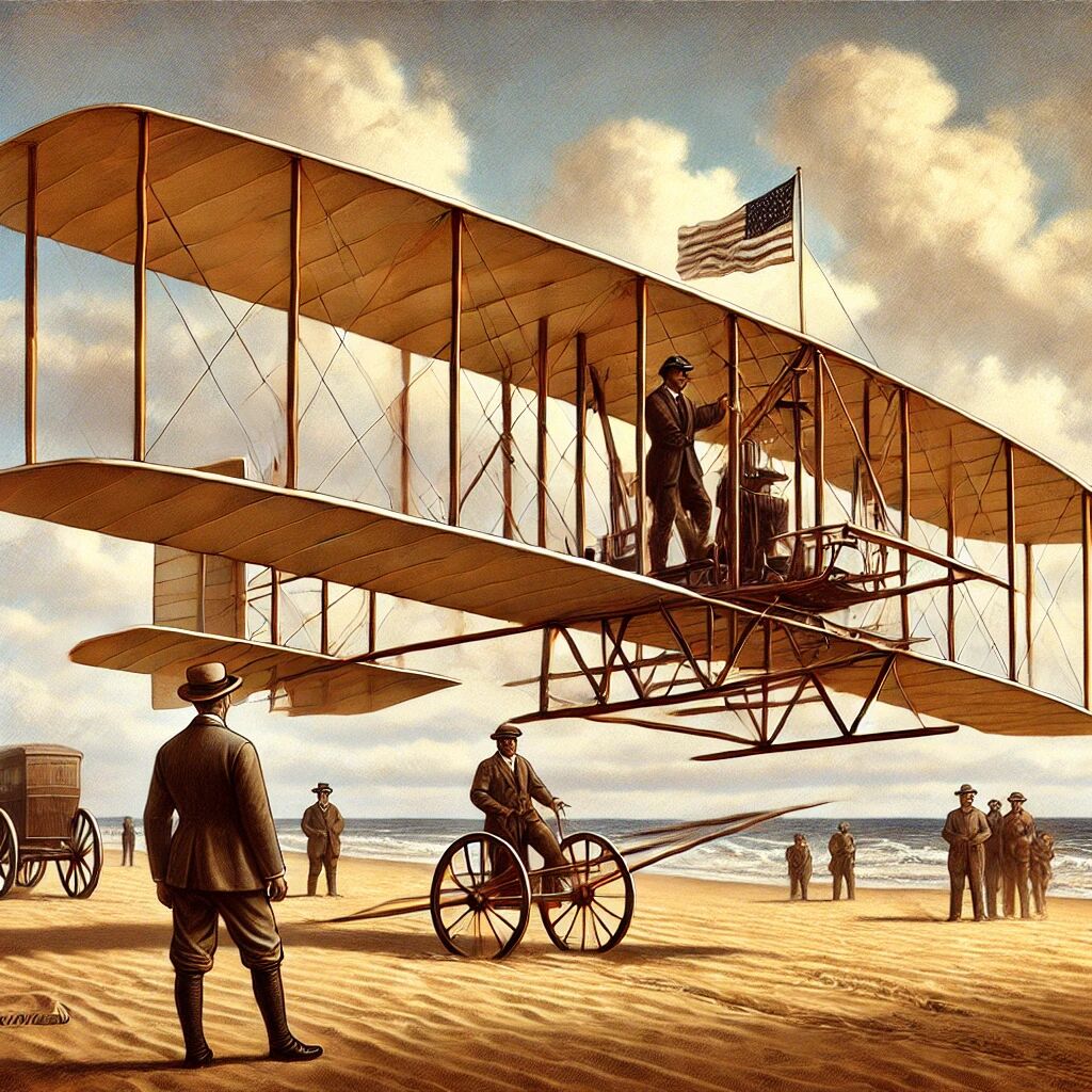In 1903 slaagden de gebroeders Wright, Orville en Wilbur, erin om de allereerste bemande, gemotoriseerde vlucht te maken. Deze historische gebeurtenis vond plaats op 17 december bij Kitty Hawk, North Carolina. Hun vliegtuig, de Wright Flyer, bleef 12 seconden in de lucht en legde een afstand van 36,5 meter af. Hoewel de vlucht kort was, markeerde het een doorbraak in de luchtvaartgeschiedenis. Dankzij hun doorzettingsvermogen en technische innovaties werd de basis gelegd voor de moderne luchtvaart. De prestatie van de Wrights inspireerde de wereld en toonde aan dat gecontroleerd vliegen met een motor mogelijk was.