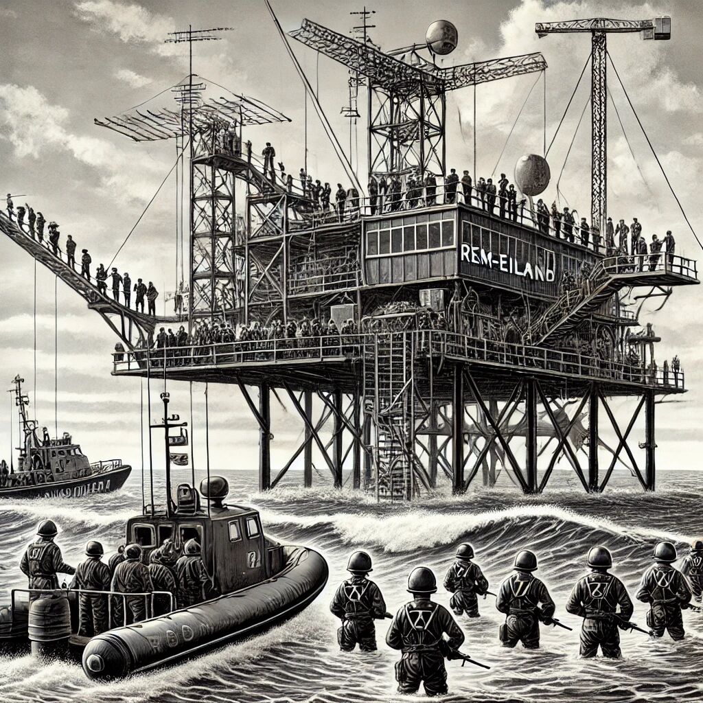 In 1964 werd het beruchte REM-eiland, een kunstmatig platform voor de kust van Noordwijk, door de politie ontruimd. Vanaf dit platform zond de commerciële piratenzender Radio en Televisie Noordzee illegaal programma’s uit, wat in strijd was met de Nederlandse wetgeving. De overheid zag de ongecontroleerde uitzendingen als een bedreiging voor het staatsmonopolie op radio- en televisie-uitzendingen. Op 17 december voerden politie en marine een operatie uit om het platform te bezetten en de uitzendingen te stoppen. De ontruiming leidde tot een debat over de toekomst van commerciële omroepen in Nederland. Het REM-eiland werd later een symbool voor de strijd om vrije media en droeg indirect bij aan de legalisering van commerciële televisie.
