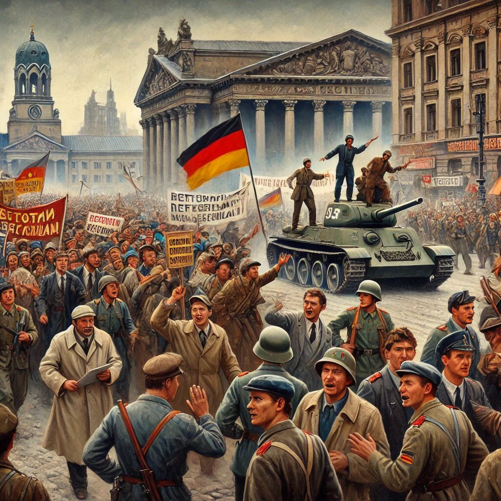 Op 17 juni 1953 brak in de Duitse Democratische Republiek (DDR) een grootschalige arbeidersopstand uit. De directe aanleiding was een verhoging van de arbeidsnormen, waardoor arbeiders harder moesten werken voor hetzelfde loon. Wat begon als een protest van bouwvakkers in Oost-Berlijn, groeide snel uit tot een massale opstand tegen het communistische regime. Duizenden mensen eisten politieke hervormingen, vrije verkiezingen en betere leefomstandigheden. De opstand werd hard neergeslagen door het Sovjetleger, met tanks en militair geweld. Honderden mensen werden gearresteerd, tientallen kwamen om, en de gebeurtenis liet diepe sporen na in de geschiedenis van de DDR.