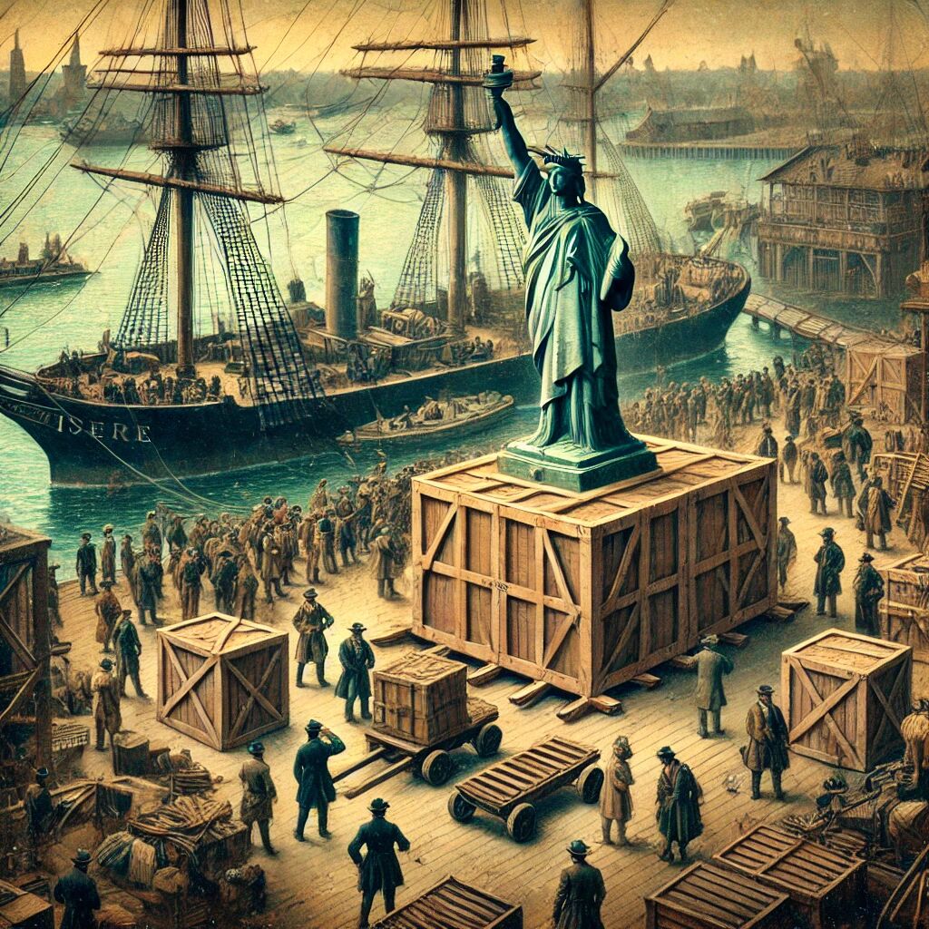 Op 17 juni 1885 arriveerde het Vrijheidsbeeld in New York aan boord van het Franse schip Isère. Dit iconische standbeeld, officieel genaamd La Liberté éclairant le monde, was een geschenk van Frankrijk aan de Verenigde Staten ter viering van de vriendschap tussen beide landen en de Amerikaanse onafhankelijkheid. Het beeld, ontworpen door Frédéric Auguste Bartholdi en met een metalen frame van Gustave Eiffel, arriveerde in 350 afzonderlijke stukken verpakt in meer dan 200 kratten. De delen werden op Bedloe’s Island (nu Liberty Island) opgeslagen en in de maanden daarna zorgvuldig in elkaar gezet. Op 28 oktober 1886 werd het Vrijheidsbeeld officieel onthuld en werd het een van de meest herkenbare symbolen van vrijheid en democratie wereldwijd.