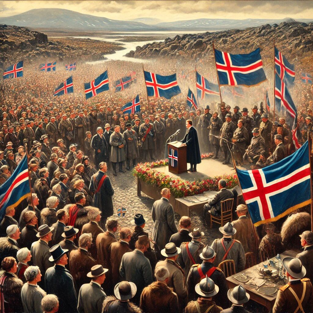 Op 17 juni 1944 verklaarde IJsland zich officieel onafhankelijk van Denemarken en werd het een republiek. Dit gebeurde tijdens een plechtige ceremonie bij Þingvellir, de historische plek waar in 930 het eerste IJslandse parlement, het Alþingi, werd opgericht. De onafhankelijkheidsverklaring volgde op een referendum in mei 1944, waarin een overweldigende meerderheid van de IJslanders voor volledige soevereiniteit stemde. De stap werd vergemakkelijkt door de Duitse bezetting van Denemarken in 1940, waardoor IJsland de facto al zelfbestuur had. Op de dag van de onafhankelijkheid werd Sveinn Björnsson uitgeroepen tot de eerste president van de nieuwe republiek. Sindsdien heeft IJsland zich ontwikkeld tot een zelfstandige en welvarende natie met een sterke democratische traditie.