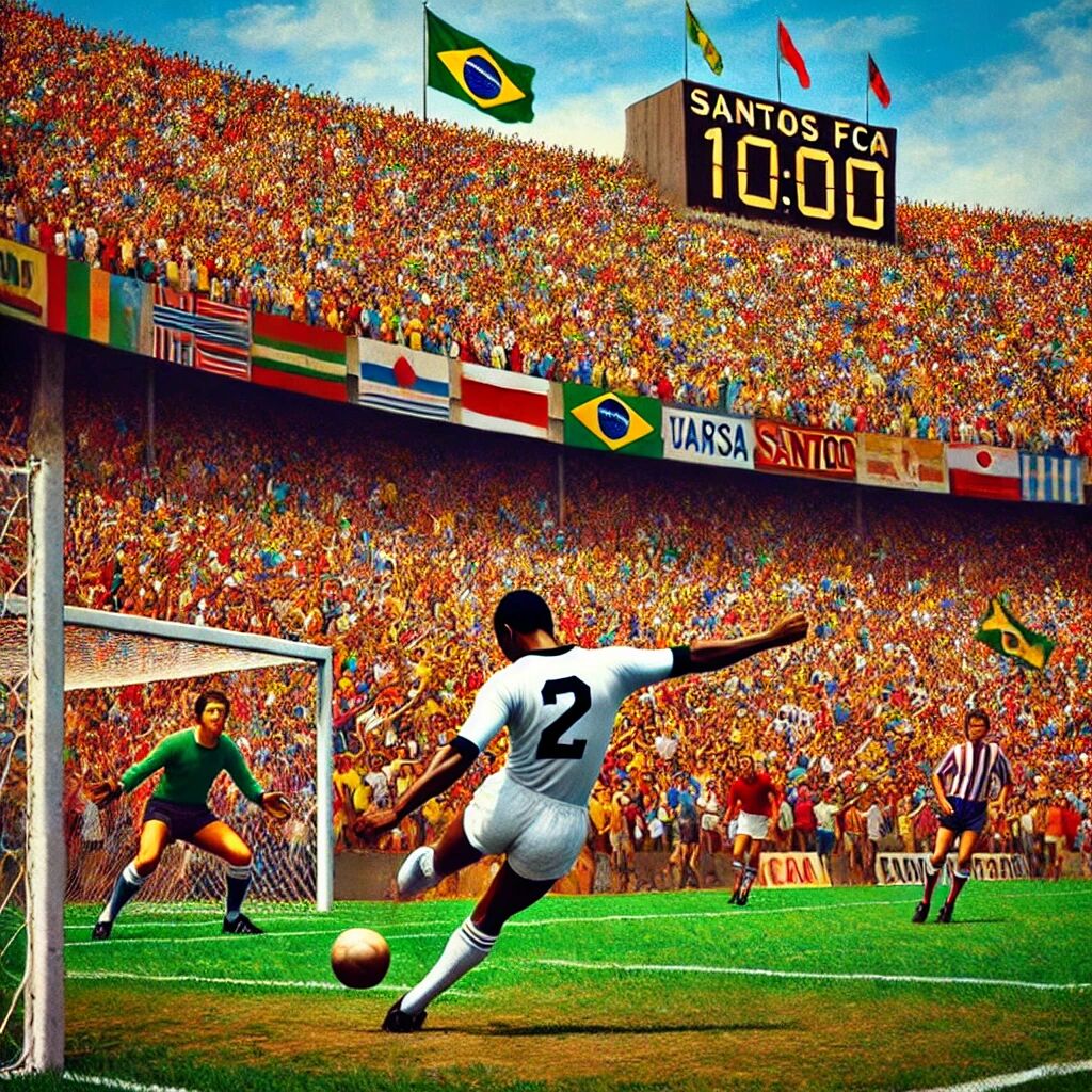 Op 19 november 1969 schreef Pelé geschiedenis door zijn 1000e doelpunt te scoren tijdens een wedstrijd tussen Santos FC en Vasco da Gama in het Maracanã-stadion, Rio de Janeiro. Het historische moment kwam in de 78e minuut, toen Pelé een penalty nam en het net vond, waardoor de menigte in gejuich uitbarstte. Dit doelpunt is “O Milésimo” genoemd en markeerde een mijlpaal in de legendarische carrière van de Braziliaanse voetballer. De gebeurtenis versterkte zijn status als een van de grootste voetballers aller tijden en is wereldwijd gevierd. Het Maracanã-stadion bleef gevuld met de echo’s van applaus en Pelé’s overwinning.
