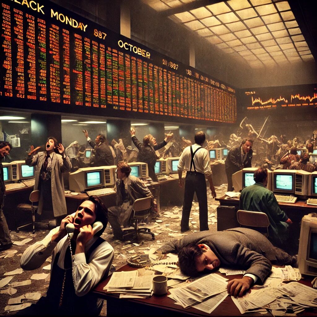 Zwarte Maandag, 19 oktober 1987, markeerde een van de grootste beurscrashes in de geschiedenis. Op die dag daalde de Dow Jones Industrial Average met 22,6%, wat een wereldwijde schokgolf veroorzaakte in de financiële markten. De crash werd veroorzaakt door een combinatie van factoren, waaronder computer-gestuurd handelen en angst voor inflatie. Beurzen over de hele wereld volgden, met forse dalingen in Europa en Azië. Ondanks de enorme verliezen, herstelden de markten zich uiteindelijk, maar Zwarte Maandag blijft een symbool van de volatiliteit en kwetsbaarheid van de wereldwijde economie.