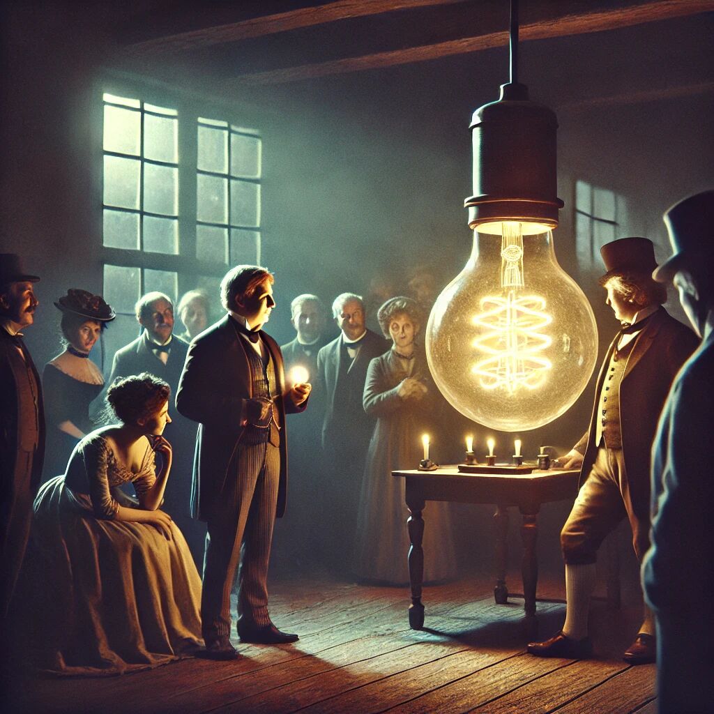 In 1879 demonstreerde Thomas Edison voor het eerst zijn verbeterde gloeilamp, een doorbraak in de ontwikkeling van elektrische verlichting. Edisons gloeilamp was niet de eerste, maar wel een van de meest succesvolle ontwerpen, dankzij het gebruik van een koolstofdraad die lang genoeg kon branden om praktisch te zijn voor dagelijks gebruik. Deze innovatie maakte het mogelijk om huizen, straten en bedrijven efficiënter te verlichten, wat een revolutie teweegbracht in de manier waarop mensen werkten en leefden. De demonstratie markeerde het begin van een tijdperk waarin elektriciteit steeds centraler zou worden in het dagelijks leven. Edisons uitvinding legde de basis voor verdere ontwikkelingen in technologie en infrastructuur, die de moderne wereld vormgaven.