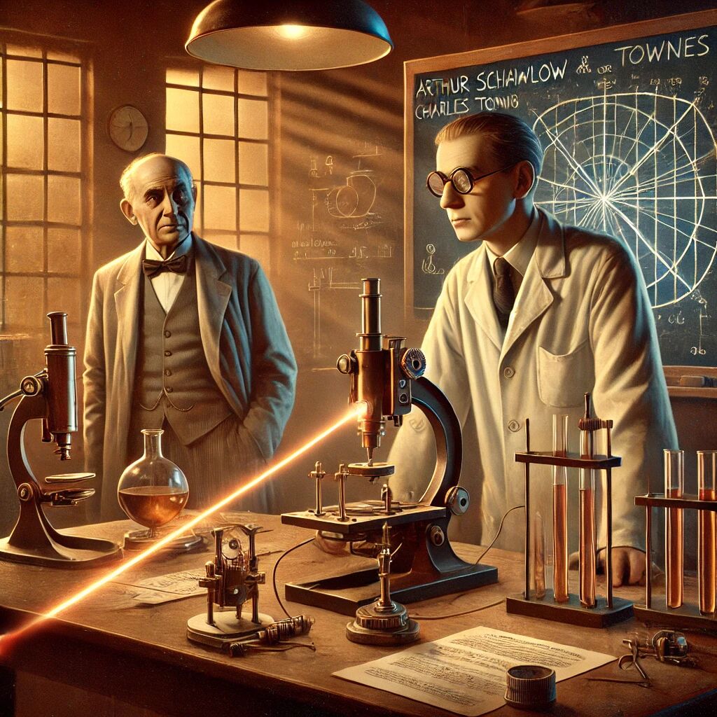 In 1960 kregen Arthur Schawlow en Charles Townes een patent op de eerste werkende laser, een revolutionaire technologie die het licht in een coherente, gefocuste straal bundelt. Hun uitvinding bouwde voort op theoretisch werk van Einstein over gestimuleerde emissie, wat de basis legde voor de werking van de laser. De naam “laser” is een acroniem voor “Light Amplification by Stimulated Emission of Radiation”. Deze technologie heeft sindsdien een enorme impact gehad, van medische toepassingen zoals oogchirurgie tot industriële en wetenschappelijke doorbraken. Het patent markeerde het begin van een nieuw tijdperk in optica en technologie.