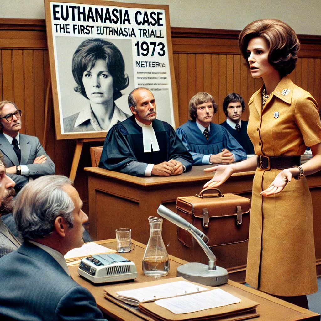In 1973 vond in Nederland het eerste euthanasieproces plaats, een zaak die de basis zou leggen voor toekomstige regelgeving. Huisarts Dr. Geertruida Postma werd vervolgd nadat ze haar terminaal zieke moeder had geholpen bij het beëindigen van haar leven. Hoewel ze schuldig werd bevonden, kreeg ze een lichte straf, wat een breed maatschappelijk debat over euthanasie op gang bracht. Dit proces leidde tot een groeiend besef dat er behoefte was aan duidelijke wetgeving rondom vrijwillige levensbeëindiging. Uiteindelijk leidde deze zaak decennia later tot de legalisering van euthanasie in Nederland in 2002. Het proces van 1973 wordt gezien als een cruciaal keerpunt in de Nederlandse medische en juridische geschiedenis.