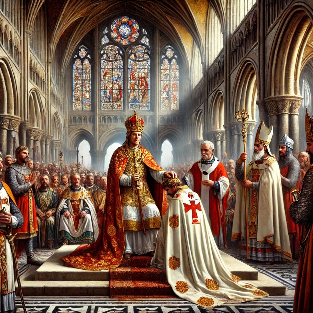 In het jaar 800 werd Karel de Grote door paus Leo III tot keizer gekroond in Rome. Deze gebeurtenis markeerde het begin van het Heilige Roomse Rijk, een poging om het voormalige West-Romeinse Rijk te herstellen. Karel de Grote, een krachtige Frankische leider, werd zo erkend als de hoogste wereldlijke autoriteit in het christelijke Europa. Zijn keizerschap bracht politieke stabiliteit en culturele bloei, ook wel de Karolingische renaissance genoemd. Met zijn nieuwe titel versterkte Karel de band tussen de kerk en de staat, wat zijn invloed en die van de christelijke kerk over Europa aanzienlijk vergrootte. Zijn kroning vormde een belangrijk keerpunt in de Europese geschiedenis en legde de basis voor het latere middeleeuwse keizerrijk.