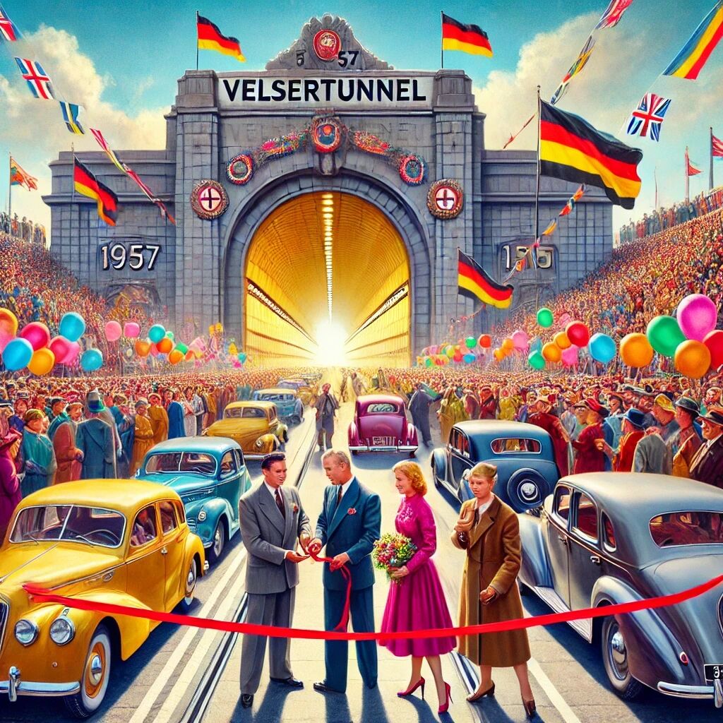 In 1957 werd de Velsertunnel officieel geopend, een belangrijk moment voor de infrastructuur in Nederland. Deze tunnel, gelegen onder het Noordzeekanaal, verbindt de stad Velsen met Beverwijk en maakt deel uit van de A22. De opening van de Velsertunnel was een technische prestatie en betekende een grote verbetering in de bereikbaarheid van de regio. Het verkeer hoefde voortaan niet langer om te rijden of gebruik te maken van pontveren, wat een aanzienlijke tijdsbesparing opleverde. De tunnel is sindsdien een essentieel onderdeel van het Nederlandse wegennet geworden.