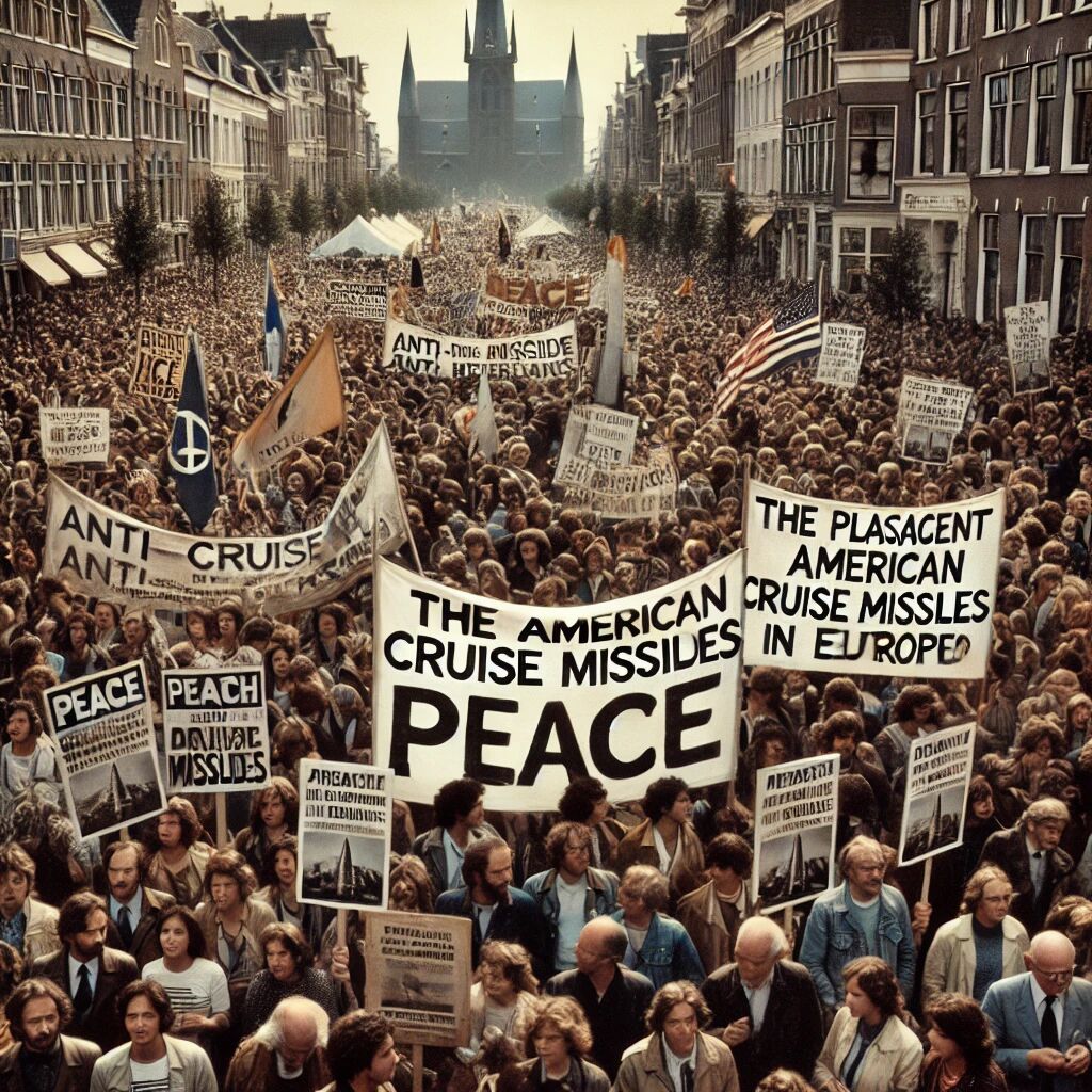 In 1983 vond in Nederland de grootste vredesdemonstratie uit de geschiedenis van het land plaats, de anti-kruisrakettendemonstratie. Ruim 550.000 mensen verzamelden zich in Den Haag om te protesteren tegen de plaatsing van Amerikaanse kruisraketten op Nederlands grondgebied. Deze raketten waren onderdeel van de NAVO-strategie tijdens de Koude Oorlog, maar stuitten op veel verzet in Europa. De demonstratie symboliseerde de brede maatschappelijke onrust en het verzet tegen kernwapens. Hoewel de raketten uiteindelijk toch werden geplaatst, versterkte de protestbeweging het debat over vrede en ontwapening in de jaren ’80.