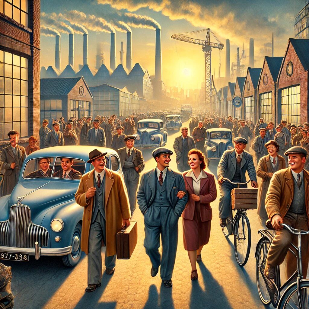 In 1955 werd in Nederland de vijfdaagse werkweek officieel ingevoerd, wat een belangrijke mijlpaal betekende voor de verbetering van arbeidsomstandigheden. Voorheen was het gebruikelijk om 6 dagen per week te werken, vaak onder zware omstandigheden. Met de invoering van de vijfdaagse werkweek kregen werknemers meer vrije tijd en rust, wat bijdroeg aan hun welzijn en productiviteit. Deze verandering speelde ook een rol in de opkomst van het weekend als vaste vrije tijd, waarin mensen konden ontspannen of sociale activiteiten ondernemen. Het besluit was onderdeel van bredere hervormingen in de arbeidsmarkt na de Tweede Wereldoorlog.