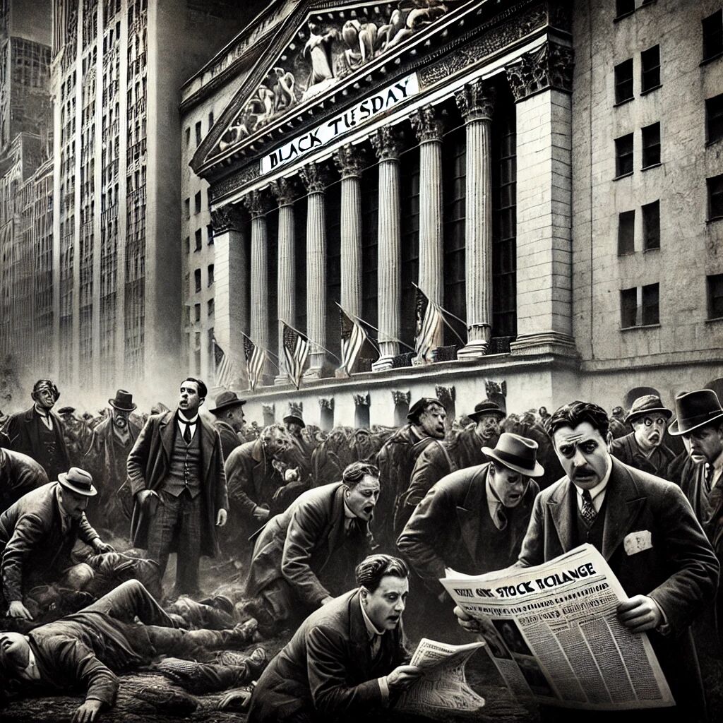 Op 29 oktober 1929, bekend als Zwarte Dinsdag, stortte de Amerikaanse beurs in, wat het begin markeerde van de Grote Depressie. Na een periode van speculatie en stijgende aandelenkoersen, daalden de koersen plotseling dramatisch, waardoor miljoenen investeerders enorme verliezen leden. De beurscrash leidde tot een wereldwijde economische crisis, met massale werkloosheid, faillissementen en armoede als gevolg. Bedrijven en banken gingen failliet, en regeringen stonden voor de uitdaging om hun economieën te stabiliseren. Zwarte Dinsdag wordt gezien als een van de meest ingrijpende financiële rampen van de 20e eeuw.