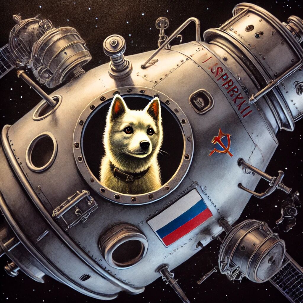 In 1957 is Laika, een Russische straathond, het eerste levende wezen dat de ruimte in werd gestuurd aan boord van Spoetnik II. De Sovjet-Unie lanceerde de satelliet op 3 november 1957, slechts een maand na de historische lancering van Spoetnik I. Laika’s missie was bedoeld om te onderzoeken of levende organismen de omstandigheden van de ruimte konden overleven. Helaas overleefde Laika de reis niet en stierf enkele uren na de lancering door oververhitting. Toch markeerde haar vlucht een cruciale stap in de ruimtevaart en effende de weg voor toekomstige bemande missies.